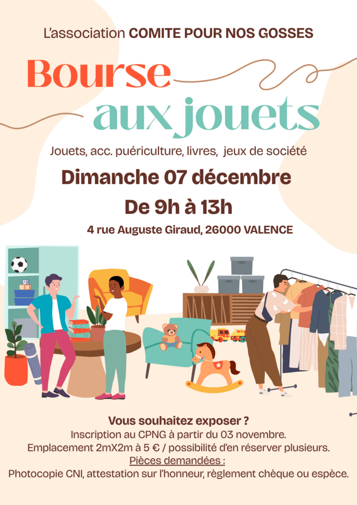 Le CPNG vous donne rendez-vous le dimanche 7 décembre de 9h à 13h au CPNG à Valence pour sa grande bourse aux jouets de fin d’année !